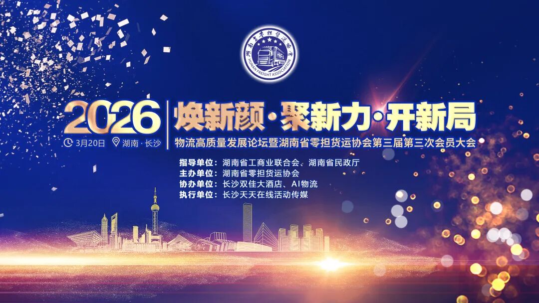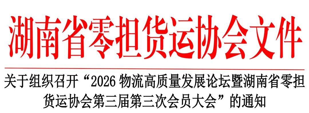 在物流行业蓬勃发展、变革浪潮汹涌的当下,湖南零担货运行业站在新的发展周期起点,机遇与挑战并存。为推动行业高质量发展,凝聚行业力量,湖南省零担货运协会特召开“焕新颜·聚新力·开新局——2026物流高质量发展论坛暨湖南省零担货运协会第三届第三次会员大会”。现将会议相关事宜通知如下: